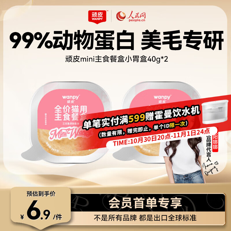 包邮 顽皮(Wanpy)猫罐头三文鱼磷虾主食餐盒罐40g*2 美毛猫湿粮宠物食品幼猫试吃